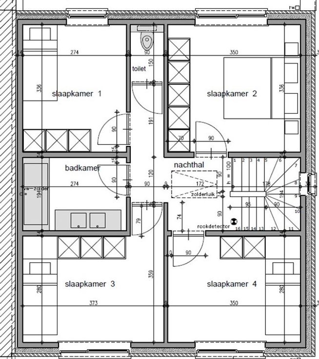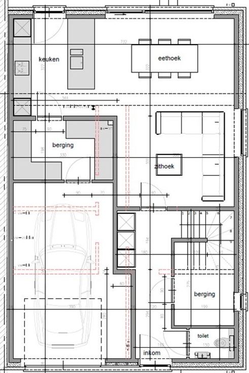 Op het gelijkvloers heeft u inkomhal met extra vestiaireruimte, gastentoilet, ruime berging, lichtrijke leefruimte met aansluitend open keuken, 2de berging en inpandige garage. Op de eerste verdieping is er de nachthall, afzonderlijk toilet, badkamer (in te richten naar smaak), 4 ruime slaapkamers. De zolderverdieping is te bereiken via een zolderluik. De ruime privatieve tuin is westgericht!
