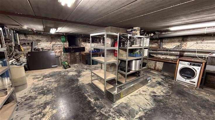 Kelder : 95 m2 : stockage - dames-en herentoiletten.