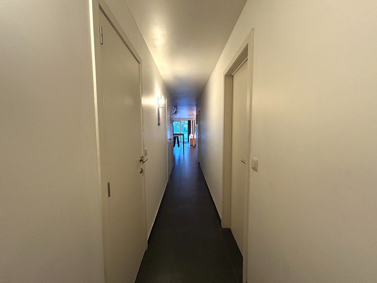 Wanneer u het appartement binnenkomt treft u een ruime inkomhal waar u ook meteen toegang krijgt tot de twee slaapkamers.