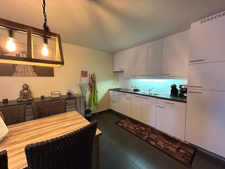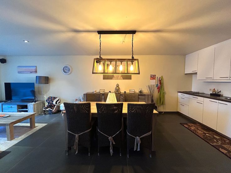 Verder in het appartement vindt u de open woon -en eetkamer met veel lichtinval terug die ook samenvloeit met de geïnstalleerde keuken.