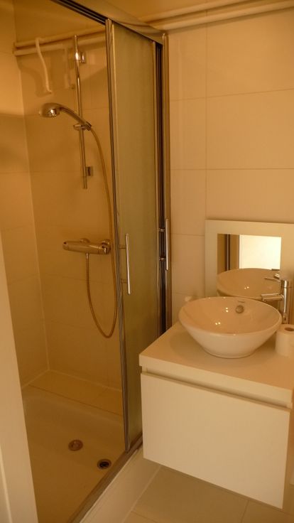 2e verdieping: slaapkamer 1,2 en 3 nieuwe badkamer met ligbad, dubbele wastafel, wc.