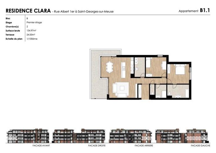 De vastgoedmakelaar van Marneffe stelt u in een complex van 34 eenheden dit appartement van 135 m² voor, gelegen op de eerste verdieping en bestaande uit: inkomhal met toilet, een woonkamer van 21 m², open naar een keuken van 25 m², twee slaapkamers van 16 m² en 15 m², twee badkamers en een wasruimte. Oplevering gepland eind 2025, wat u de mogelijkheid biedt om uw vloer- en wandtegels, deuren, keuken en badkamer te kiezen, zodat u de woning naar eigen smaak kunt personaliseren. Topuitrusting: aangekondigd EPC A, vloerverwarming (individuele warmtepomp), aluminium ramen met driedubbele beglazing, dubbele flux-ventilatiesysteem, zonnepanelen, volledig uitgeruste keuken, CONFORME elektriciteit, lift ... Buitenzijde: privéterras van 24 m² en kelder inbegrepen. Binnenparkeerplaatsen te koop voor €25.000 exclusief btw. Deze luxueuze appartementen zijn met oog voor detail ontworpen, met zorg geselecteerde materialen en een praktische inrichting. Er is veel aandacht besteed aan uw privacy. Dankzij de grote ramen geniet u ten volle van het uitzicht op de tuin en een zachte, natuurlijke lichtinval. Ideale ligging in Saint-Georges: winkels, medische centra en autosnelwegen zijn vlakbij. Hoogwaardig afgewerkt appartement waar u enkel nog uw koffers hoeft neer te zetten! Verkoop onder btw-stelsel en toepassing van de Breyne-wet (betaling in schijven). Plannen en lastenboek beschikbaar op onze website : https://www.immodemarneffe.be/fr/immobilier-neuf/residence-clara/4470-saint-georgessur-