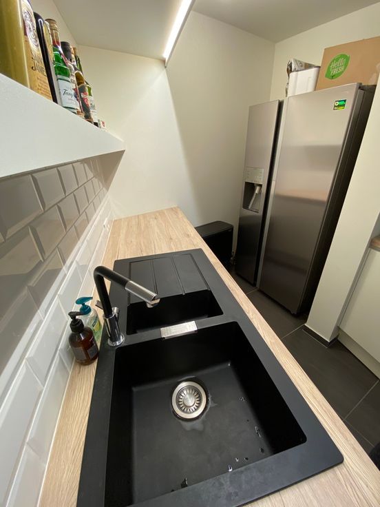 Ruime keuken met ingemaakte kasten, inductiekookplaat, oven, microgolf,...