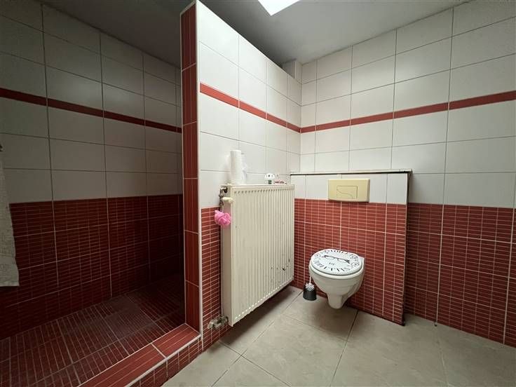 Au rez-de-chaussée : Grand living lumineux, cuisine ouverte entièrement équipée, buanderie et salle de douche avec wc.