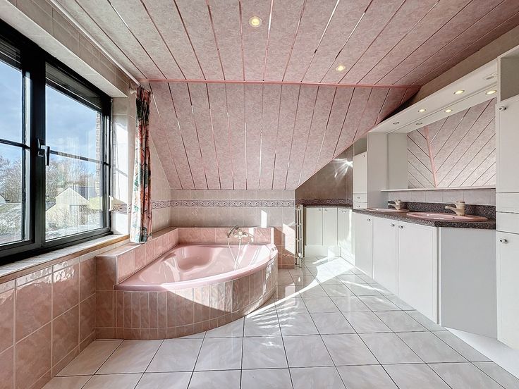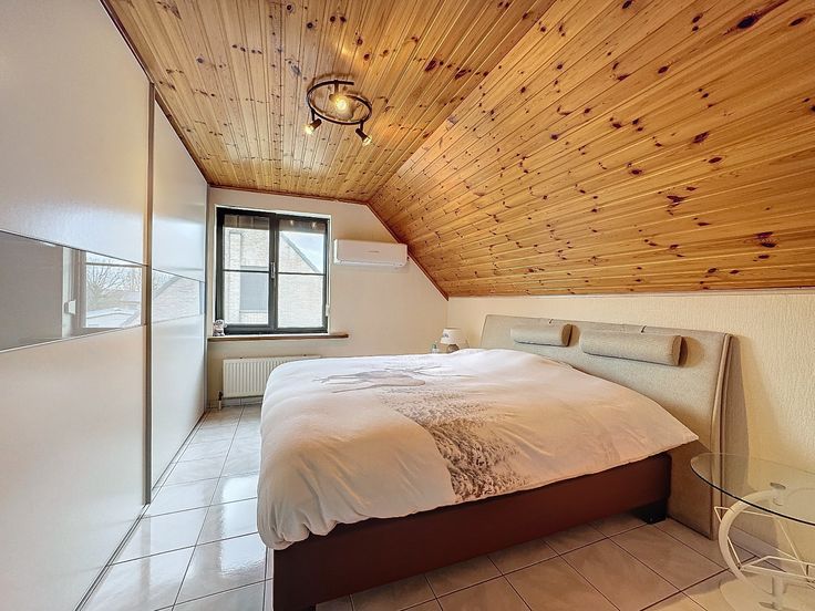 Eerste verdieping: overloop, 3 slaapkamers (waarvan 1 met lucht/lucht warmtepomp), grote badkamer met ligbad en dubbele lavabo, afzonderlijk toilet, kuishok.
