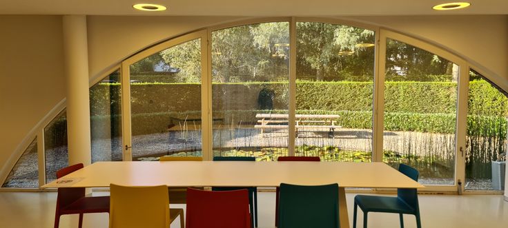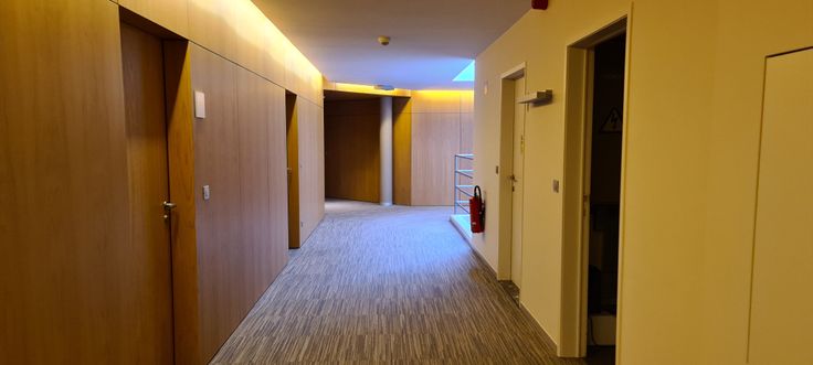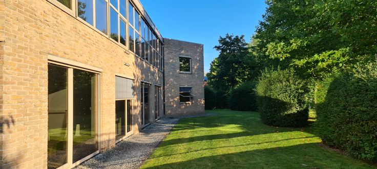 Het gelijkvloers heeft een mooie inkom met een receptie, volledig ingerichte keuken met eetplaats en daarnaast verschillende kantoorruimtes en enkele kleinere vergaderzalen. Op de eerste verdieping zijn er opnieuw een mix van verschillende kantoorruimtes en vergaderzalen, aangevuld met een grote boardroom.