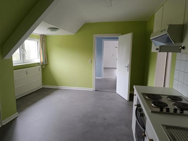 Hall d'entrée, cuisine (évier, four, taque et hotte - 15m²), séjour (17m²), salle de bain (évier, douche et wc), bureau (6m²), et 2 chambres de 15m² environ.