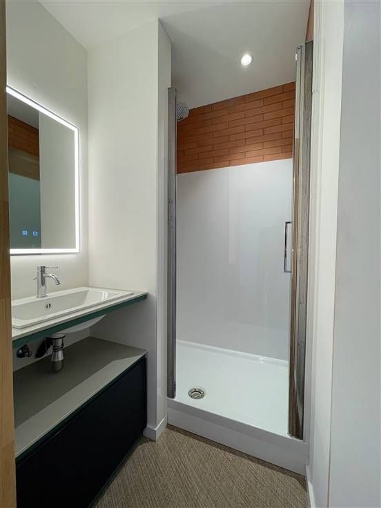 Daarnaast zijn er 1 badkamer met wastafel en ligbad, 1 douchekamer met douche en wastafel, een apart toilet en extra bergruimte.