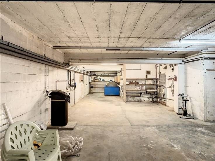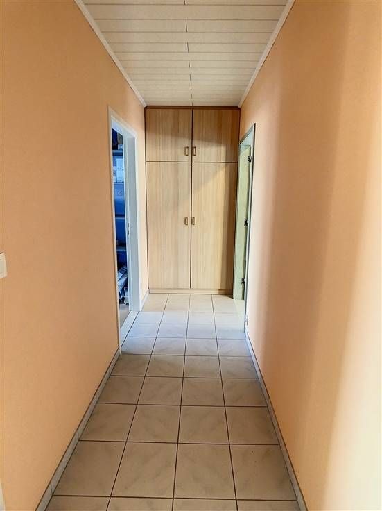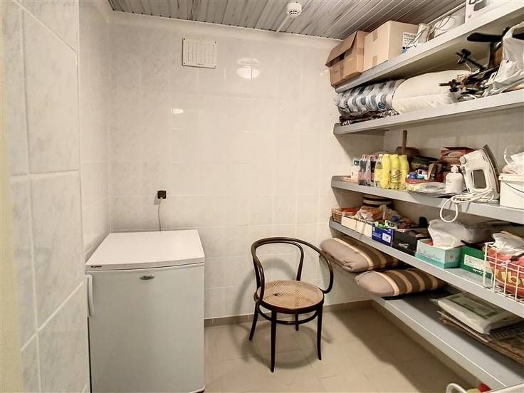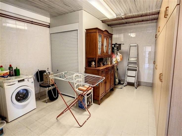 ACHTERLIGGENDE NIVEAU (ligt lager): hier bevindt zich een woongelegenheid bestaande uit inkomhal met apart toilet en de trap naar boven, een ruime keuken met 2 aangrenzende bergings en een stookplaats.