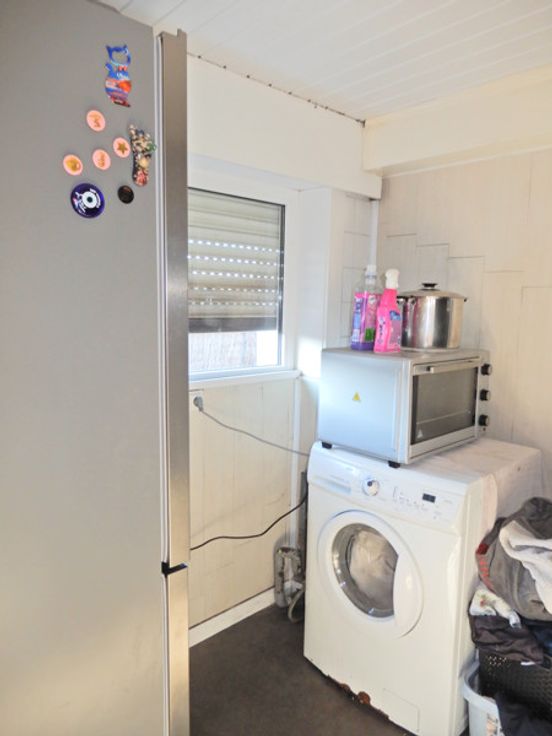 Indeling: inkom - apart gastentoilet - living - ingerichte keuken met eethoek - bergruimte - 2 slaapkamers - wasruimte - ingerichte badkamer (lavabomeubel, ligbad en kasten).