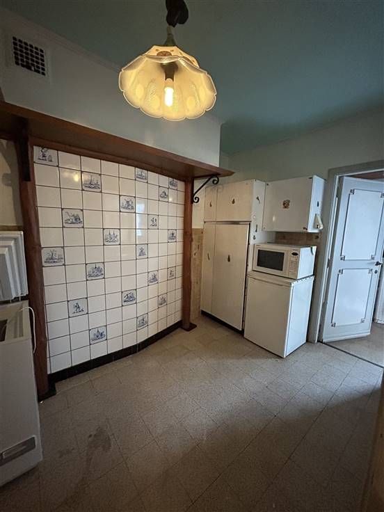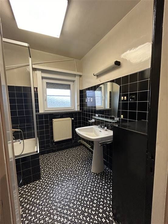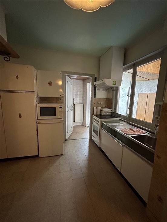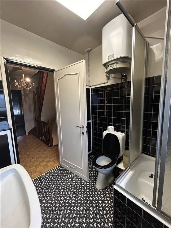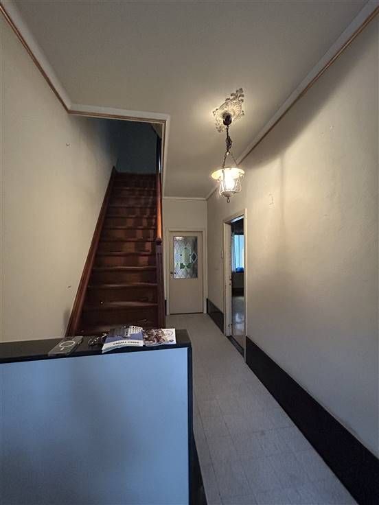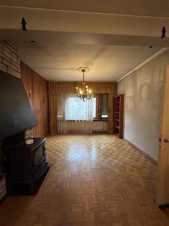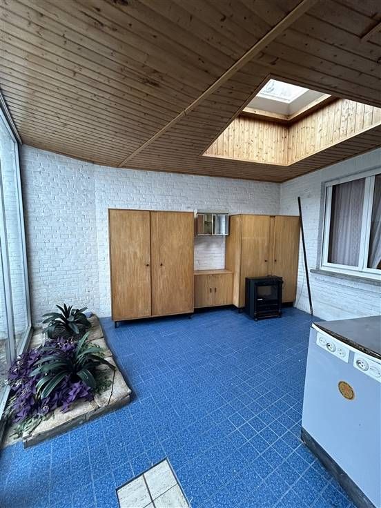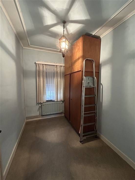 Deze woning, gelegen op een steenworp van verbindingswegen en winkels, is praktisch ingedeeld met een inkomhal, living met eetplaats, keuken, apart toilet, veranda, wasplaats en kelder. Boven zijn er drie slaapkamers en een geïsoleerde zolder die kan worden ingericht als twee extra kamers. De badkamer is voorzien van wasmeubel, douche, toilet en van een nieuwe boiler.