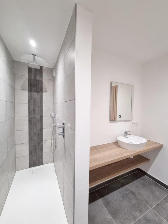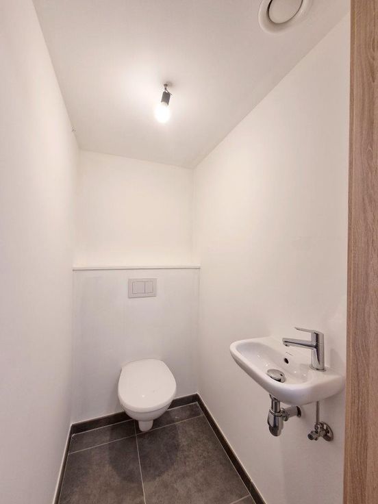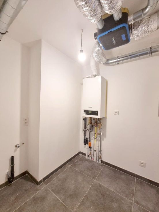 Très bel appartement neuf (2 ch.) situé au rez-de-chaussée d'un immeuble comprenant trois unités. Excellentes performances énergétiques. Parking privé. Jardin. Composition : séjour lumineux et spacieux avec cuisine équipée (évier, lave-vaisselle, four, plaque vitrocéramique, hotte, combiné réfrigérateur-congélateur) et porte-fenêtre donnant sur la terrasse et le jardin, salle de bain (douche + lavabo), 2 chambres, wc individuel, buanderie.