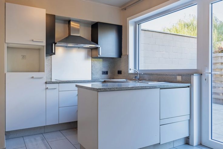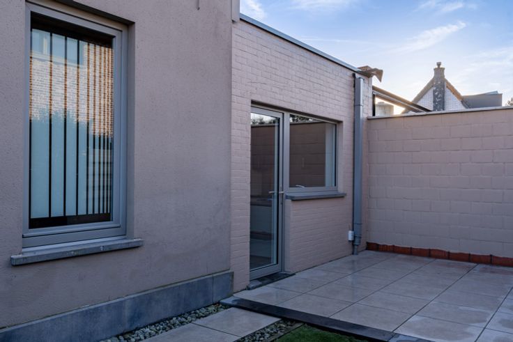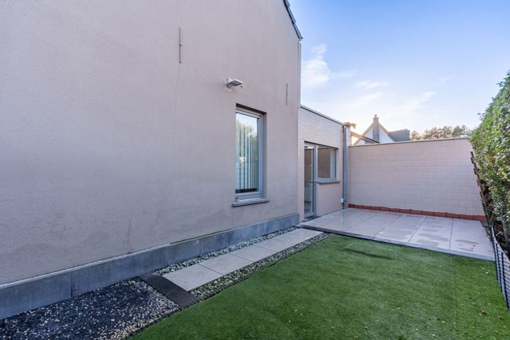 De inkom geeft toegang tot de ruime leefruimte met lichtrijke eetplaats. De open, geïnstalleerde keuken biedt zicht over de tuin, waar het aangenaam vertoeven is. Verder omvat het gelijkvloers een badkamer met douche, enkele lavabo en toilet. Via de trap betreedt u de eerste woonlaag, waar zich twee ruime slaapkamers bevinden.