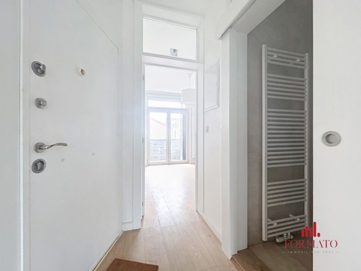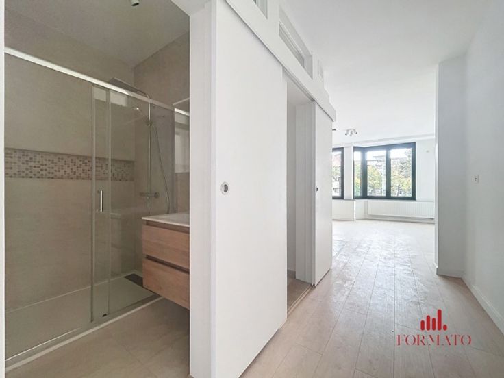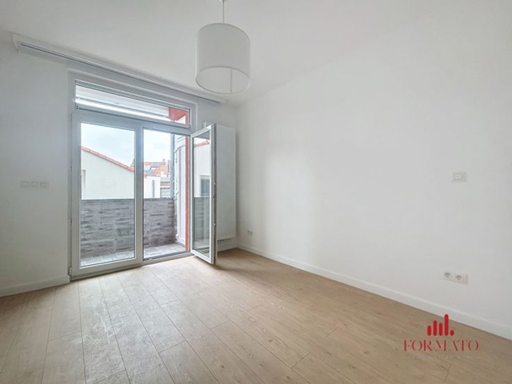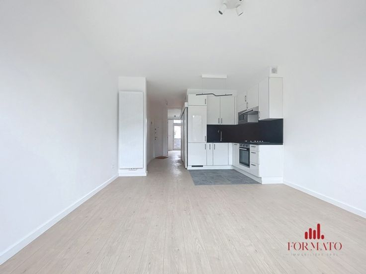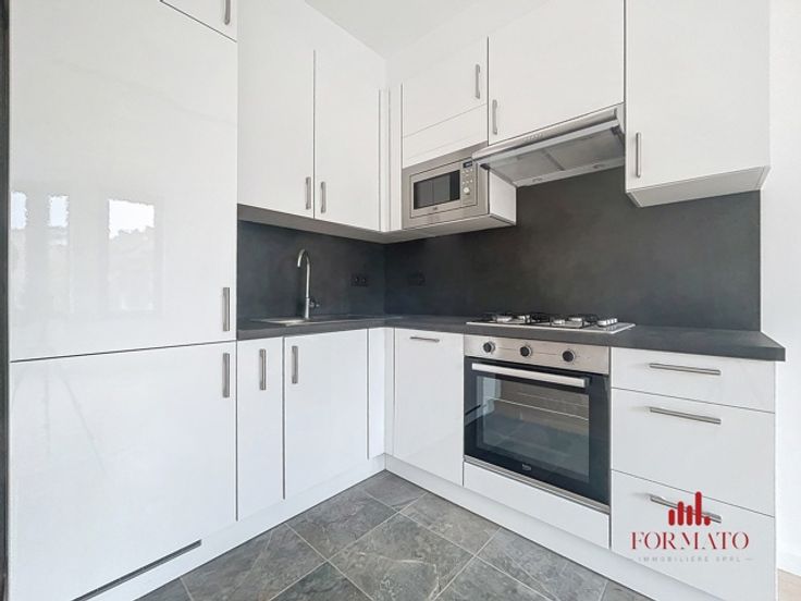 Immobilière Formato presenteert dit volledig gerenoveerde appartement met één slaapkamer en terras, dat een moderne en aangename woonomgeving biedt. Deze flat ligt in een gewilde wijk en combineert comfort en veiligheid, met een gepantserde deur en camera's in de gemeenschappelijke ruimtes voor je gemoedsrust. De woning heeft een uitstekende PEB C-classificatie, wat optimale energieprestaties garandeert. De nieuwe ramen met dubbele beglazing zorgen voor hoogwaardige geluids- en warmte-isolatie en creëren een rustige omgeving. Bovendien is de flat van muur tot vloer geïsoleerd, wat de energie-efficiëntie nog verder verbetert. Deze woning heeft ook ruimte voor een wasmachine en wasdroger, wat het geheel nog praktischer maakt. Je vindt praktische opbergruimte in de slaapkamer, wat zorgt voor een georganiseerde en functionele leefruimte. De keuken is volledig uitgerust, klaar voor al je kook- en sociale behoeften. Het gebouw heeft ook een fietsenberging in de gemeenschappelijke ruimtes, ideaal voor liefhebbers van tweewielers, en een privékelder voor extra opslagruimte. Je zult ook het terras waarderen, een echte aanwinst als het gaat om genieten van het buitenleven. Deze flat is een zeldzame kans voor wie op zoek is naar een kant-en-klare woning die moderniteit en functionaliteit combineert. Voor meer informatie of om een bezichtiging te regelen, kunt u contact met ons opnemen via info@formato.be of +32 489 45 85 01. Uw toekomstige woning wacht op u!