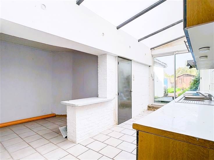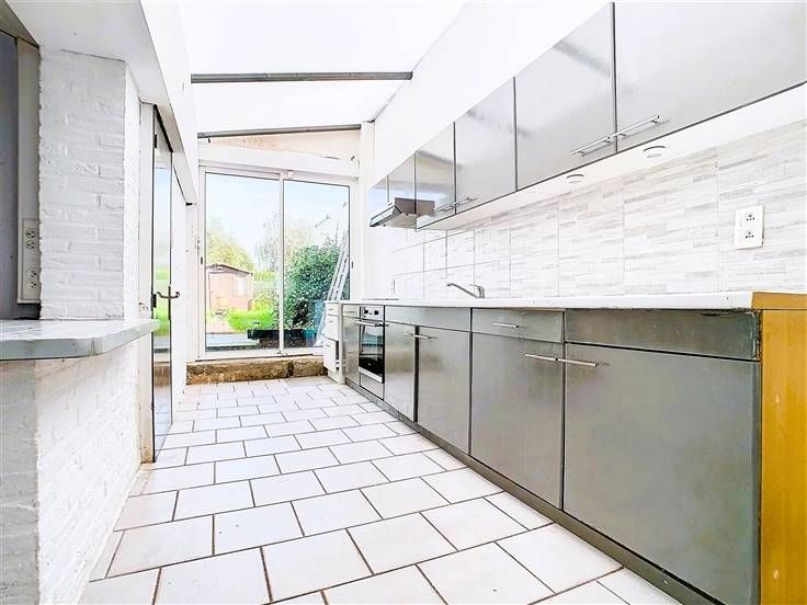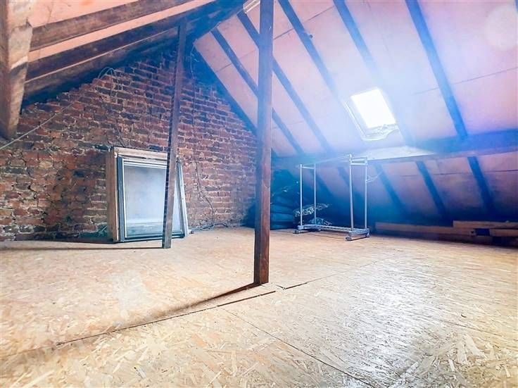Sorry er is geen nederlandse vertaling beschikbaar. Située à Mouscron, à proximité des commerces, des écoles et des transports en commun, cette maison à deux façades se compose comme suit : Au rez-de-chaussée, vous découvrirez un espace salon-salle à manger agrémenté d'une cheminée au feu de bois, ainsi qu'une cuisine semi-équipée offrant une vue sur le jardin. Celle-ci comprend un four, un évier et une hotte. Vous trouverez également un espace buanderie ou cellier, ainsi qu'une salle de bain équipée d'une douche, d'un meuble vasque et de WC. À l'étage, deux chambres vous attendent, ainsi qu'un accès au grenier aménageable, dont le plancher a été récemment refait. .