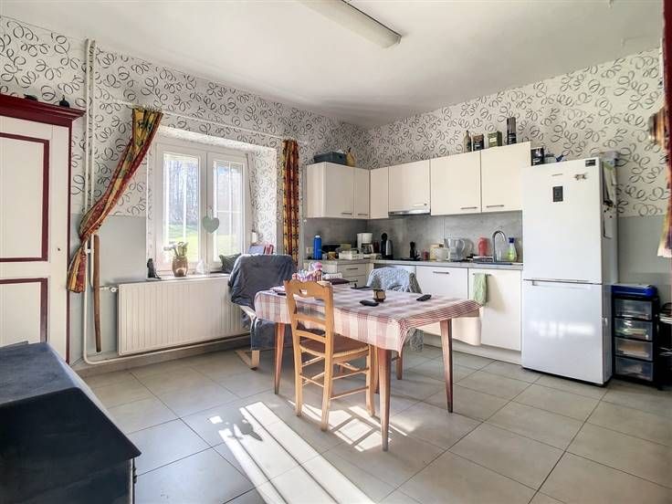 Mooi huis met 4 slaapkamers, eetkamer, keuken, woonkamer, bijkeuken, badkamer, kelder en tuin gelegen in de wijk "Les Bruyères" van Biesmes, op 5 minuten van Mettet en zijn winkels, scholen, bussen, enz.