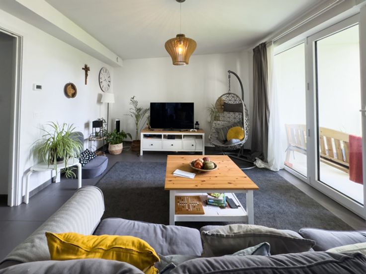 In een constructie uit 2018 biedt TRIANON INVEST u dit aangename tweeslaapkamerappartement met een groot zuidgericht terras dat uitkijkt op een rustige en groene omgeving. Ruime inkomhal, grote woonkamer met volledig uitgeruste Amerikaanse keuken en dubbele toegang tot het aangrenzende terras. In het slaapgedeelte: een badkamer, aparte toilet, aparte wasruimte, twee slaapkamers. Een kelder vervolledigt het geheel. Conforme elektriciteit, dubbele-flux ventilatie individuele, gematigde kosten, collectieve gasverwarming (co-generatie), performante isolatie, EPC B. Verhuurd onder AIS-contract (6/15). Ideaal voor een veilige investering als goede huisvader. Parkingplaats in optie.
