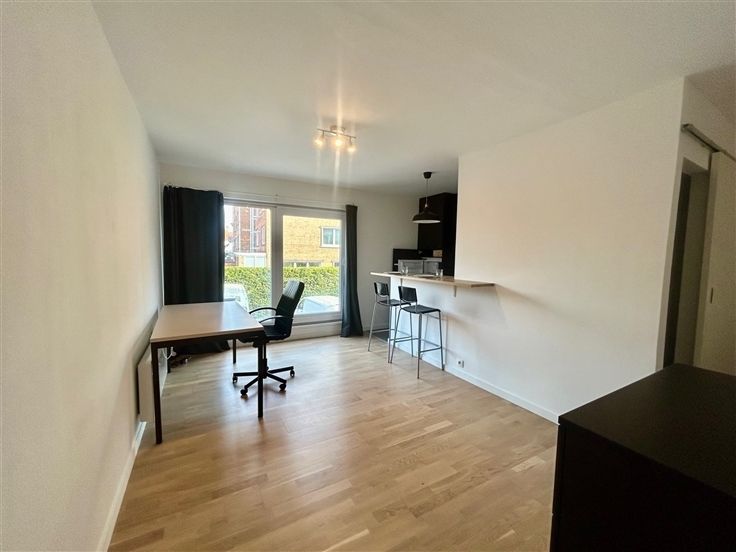 De residentie bevindt zich op een absolute toplocatie binnen de ring van Leuven, vlakbij de Kapucijnenvoer. Deze energiezuinige en unit met een bewoonbare oppervlakte van 35 m² beschikt over een inkomhal met toilet, een volledig geïnstalleerde open keuken met frigo, vaatwasser en vitrokeramische kookplaat, een lichtrijke en gezellige woonkamer en een slaaphoek met aansluitend een badkamer met inloopdouche. Deze knusse flat is hoogwaardig afgewerkt met onder andere eiken parket, keukenapparatuur van Bosch, 3-dubbele beglazing,... Bovendien wordt deze flat volledig gemeubeld verhuurd. Verder is er per unit een ondergrondse en bewaakte fietsparkeerplaats inbegrepen. De provisie voor de gemeenschappelijke lasten bedraagt 45€/maand (inclusief water). Een buitenkans. Onmiddellijk beschikbaar.