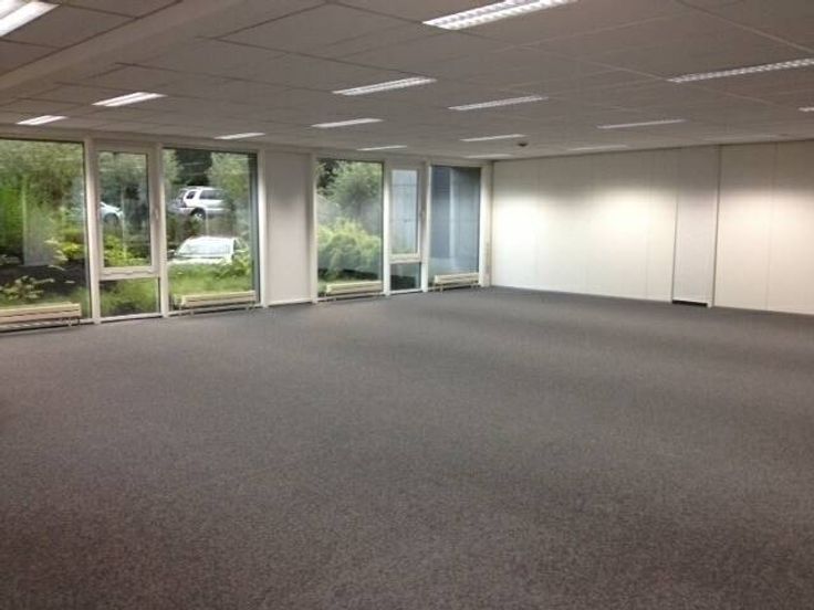 Specificaties voor kantoorruimte van 738m²: deels landscape, deels ingedeelde ruimte, kitchenette, badgesysteem, gemeenschappelijk sanitair per verdiep.