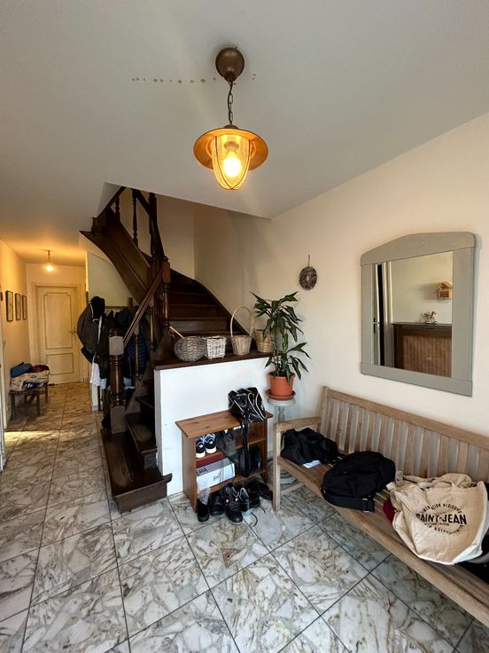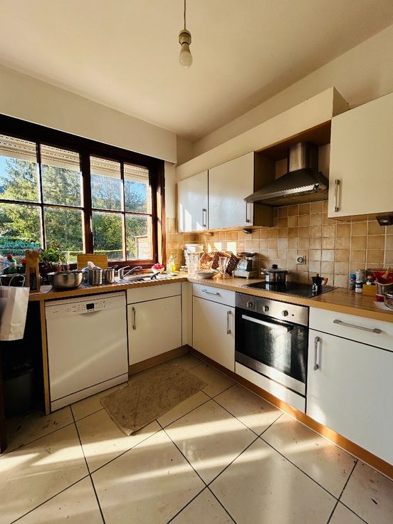 Maison bel-étage idéalement située dans un quartier calme proche de la gare de Rhode-Saint-Genèse. Le bien se compose au rez de chaussée d'un hall d'entrée, d'une cave et d'un vaste garage (possibilité de le diviser et d'y faire une family room ou un bureau donnant sur le jardin. Le premier étage se compose d'un living en L avec une salle à manger, un salon et un coin bar. Il y a un WC visiteurs. Au 2ème étage, il y a 3 chambres à coucher et une salle de bain et un WC. Il y a un vaste grenier aménageable (possibilité d'y faire 2 chambres et une salle de bain ou une masterbedroom). Le tout agrémenté d'un beau jardin exposé Sud-Ouest. Un bien idéalement situé dans un quartier calme proche des commodités. Beaux volumes à exploiter et travaux de remise au gout du jour à prévoir.