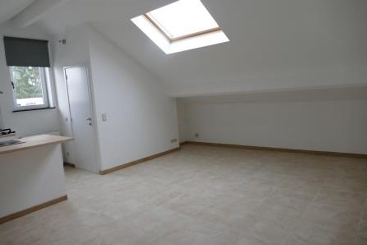Bel appartement 1 chambre dans une rue calme à la campagne.Hall d'entrée comprenant un espace de rangement et cage d'escalier .Living comprenant une cuisine ouverte, salle de douche avec lavabo, wc et emplacement machine à laver, une chambre à coucher. Terrasse au rez et emplacement de parking extérieur. 650 + charges