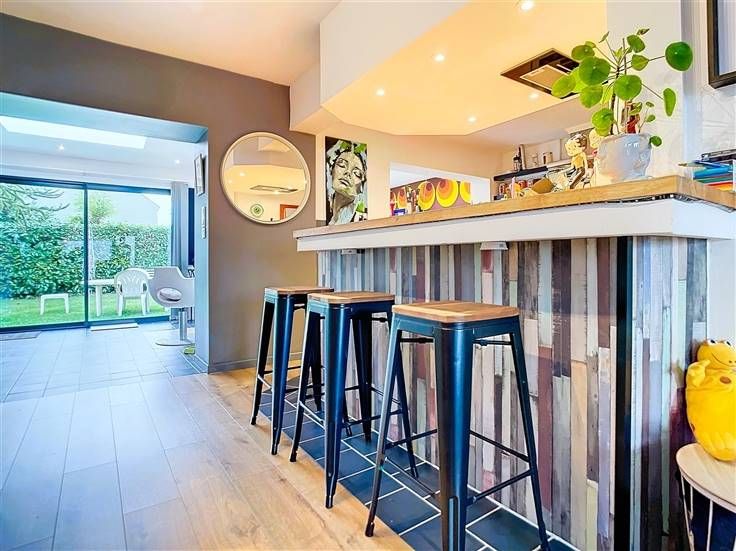 Au rez-de-chaussée, vous trouverez : un hall d'entrée avec WC séparé, un salon, une salle à manger, une cuisine entièrement équipée, une agréable pièce de vie dotée de deux baies vitrées donnant directement sur le jardin.