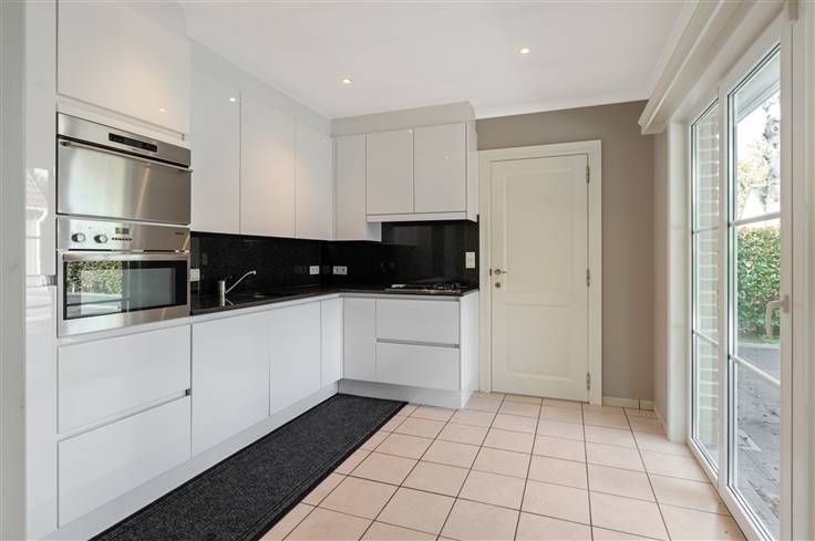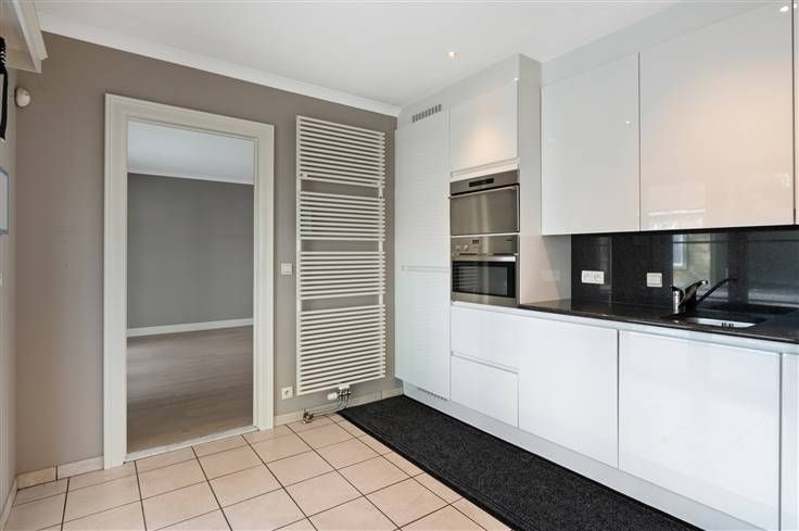 Aansluitend aan de leefruimte vinden we de keuken met voldoende kastruimte en verder de volgende uitrusting: kookvuur (gas en inductie), dampkap, spoelbak, vaatwasser, combioven, stoomoven en koelkast. Naast de keuken bevindt zich ook nog een berging.