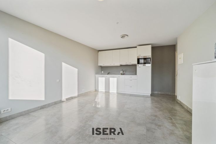De ruime en lichtrijke woonkamer met open keuken vormt het hart van het appartement met veel natuurlijk licht.