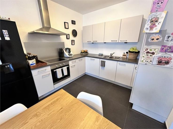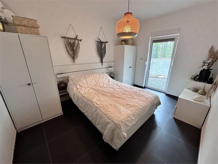 Appartement dun immeuble récent se compose comme suit; Un living spacieux et lumineux, dune buanderie, de deux belles chambres, dune salle de bains (douche, wc et lavabo) et dune cuisine super équipée (hotte, taques, four, réfrigérateur avec petit espace congélateur, lave-vaisselle et de meubles de rangements,..)
