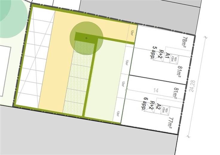 Vlot gelegen projectgrond in Izegem. Met een straatbreedte van 24,28 meter en een diepte van 39,50 meter biedt dit perceel mooie opportuniteiten. 11 standaard appartementen met achterliggende bovengrondse parkeerplaaten kunnen als basis dienen voor een nieuwe invulling.