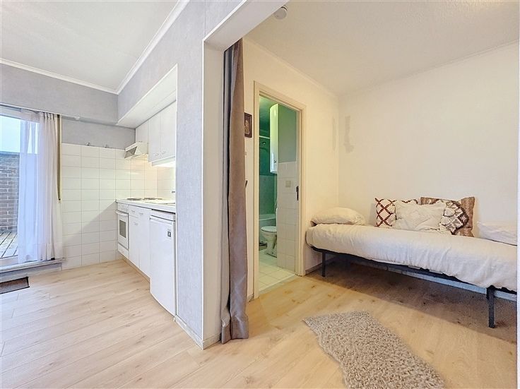 Deze gezellige studio is ideaal gelegen in een rustige buurt, naburig aan het Citadelpark. Kenmerken: Ruime en lichtrijke leefruimte (15,9m²). Open keuken, voorzien van kookplaat, oven, dampkap, en voldoende opbergruimte. Slaapkamer (8m²), met ingebouwde kasten en opbergruimte. De slaapkamer kan afgeschermd worden van de leefruimte door middel van gordijnen. Badkamer (4,2m²) met bad met douche mogelijkheid, wastafel opberg rek en toilet. Groot privéterras (17m²) met opbergruimte (2,88m²). Plaatsen van domicilie is verplicht. Een 1/3 regel m.b.t. het loon is van toepassing. Maximum 1 persoon toegelaten! Contacteer ons voor meer informatie of een bezichtiging via het nummer 09/225.00.78. Ref : 64070 Ref : 64070