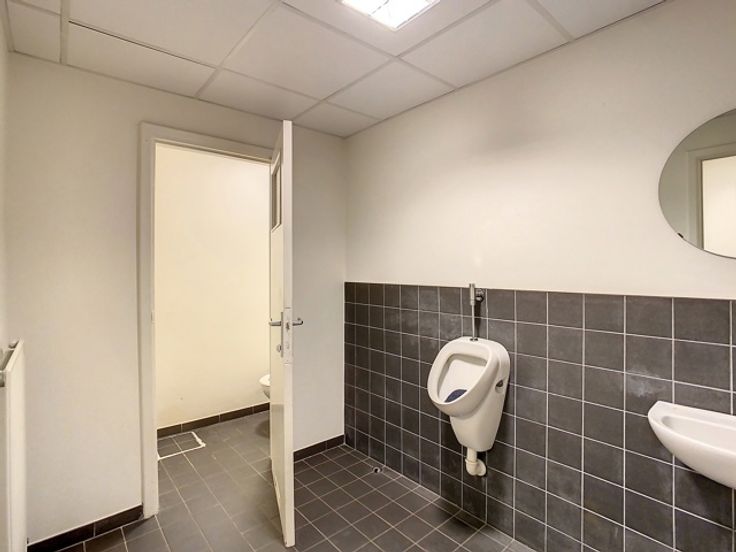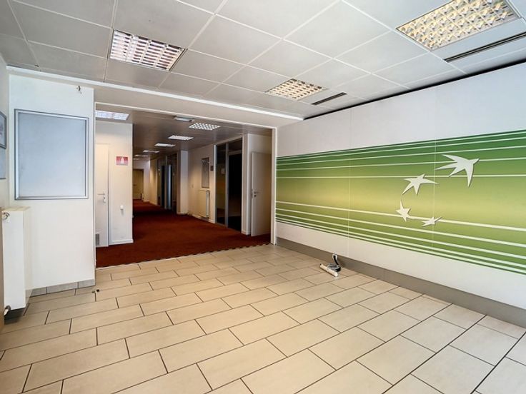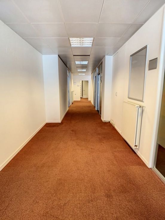 Wanneer we het pand betreden komen we in een grote inkomhal/ontvangstruimte, verder vinden we verschillende ruime bureauruimtes en stockageruimtes. Dit kan uiteraard volledig aangepast worden naar eigen wensen en noden. Het pand beschikt over een keuken, sanitaire voorzieningen en airco. De oppervlakte van de totale ruimte is +- 180m². Het pand zou ideaal kunnen gebruikt worden als kinderdagverblijf.