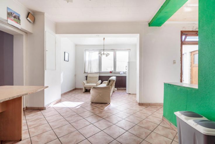 Cette maison 2 façades à rénover, située proche de l'autoroute et des commodités, possède de beaux volumes. Le rez-de-chaussée comporte 2 portes d'entrée. La 1ère permet d'accéder à un local pouvant être utilisé comme commerce. La 2nde, donne sur un beau séjour de 32 m² et la grande cuisine en enfilade de 34m². À ce niveau, on trouve également une cour, un WC et une remise. Au 1er étage, il y a 4 chambres, une salle de bains avec baignoire et WC, un bureau et une pièce pouvant servir de salle de jeux ou de bureau. Le 2ème étage est occupé par 2 grands greniers aménageables de 27 et 28 m².  Le sous-sol compte 2 petites caves comprenant la citerne à mazout et la chaudière. Les châssis sont récents et possèdent des volets.  RC net : 951 € PEB : E. Prix : FAIRE OFFRE À PARTIR DE 70.000 € SOUS RESERVE D'ACCEPTATION DU PROPRIETAIRE. Le propriétaire, vendeur du bien, dispose de la faculté, de manière totalement libre et autonome, de vendre ou de ne pas vendre. S’il décide de vendre, il n’est nullement tenu de retenir l’offre la plus élevée mais choisit celle qui lui convient le mieux au regard de ses propres critères (montant de l’offre, conditions suspensives, délai de signature, etc.). Pour plus d'informations, rendez-vous sur notre site internet : https://www.lametropole.be/nos-biens-a-vendre