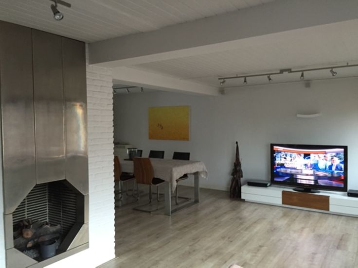 ruime woonkamer met OPEN HAARD