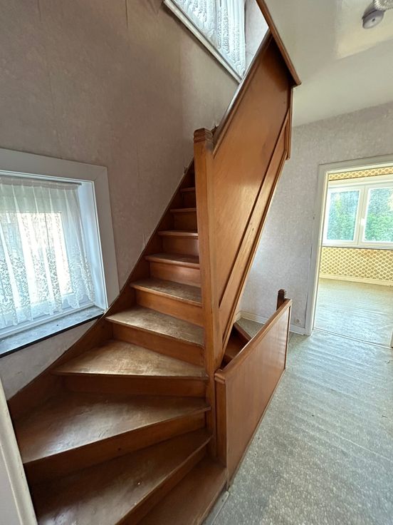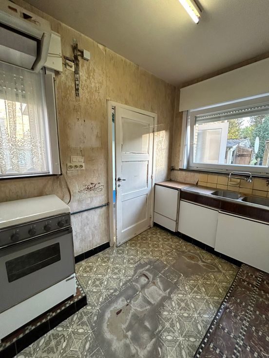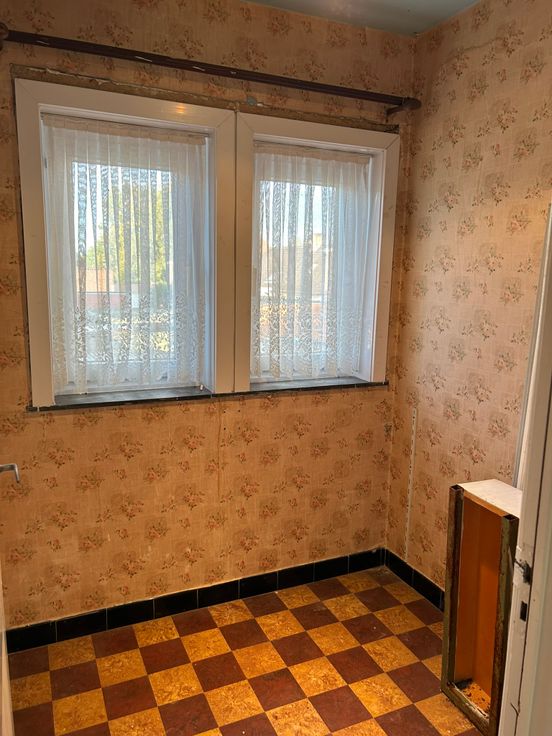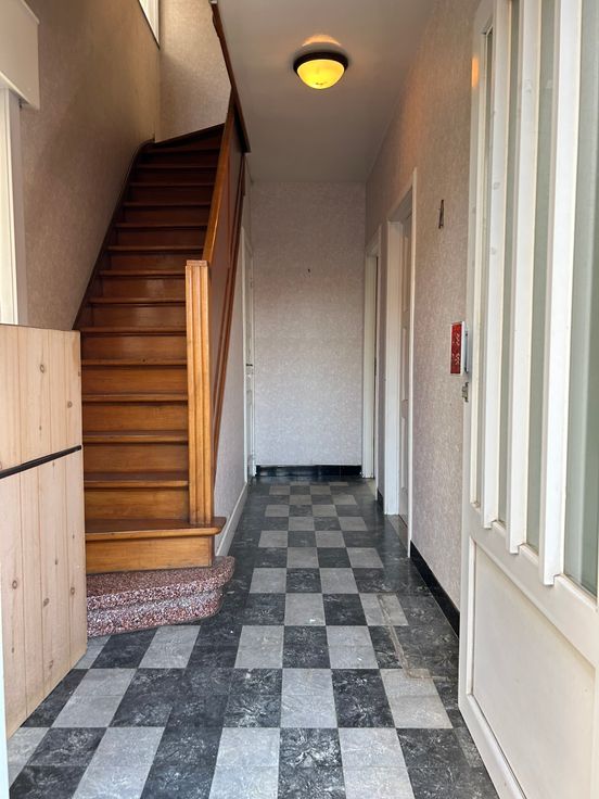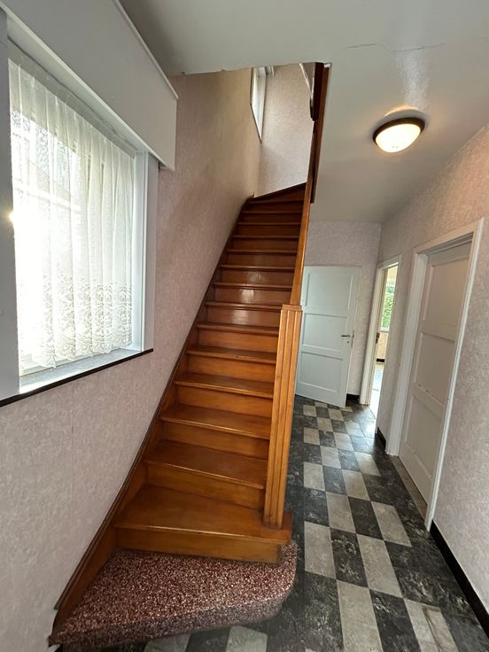 Kloeke halfopen woning met mooie tuin op 450m². Aangename woonstraat. Er zijn 3 slaapkamers. Vaste trap naar zolder. Geen CV, wel aardgas. Mooie volumes, grondige renovatie.