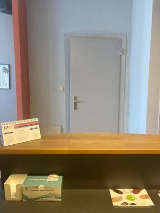 De behandelruimte zelf bevat een behandeltafel met lavabo, een bureau, en meer.