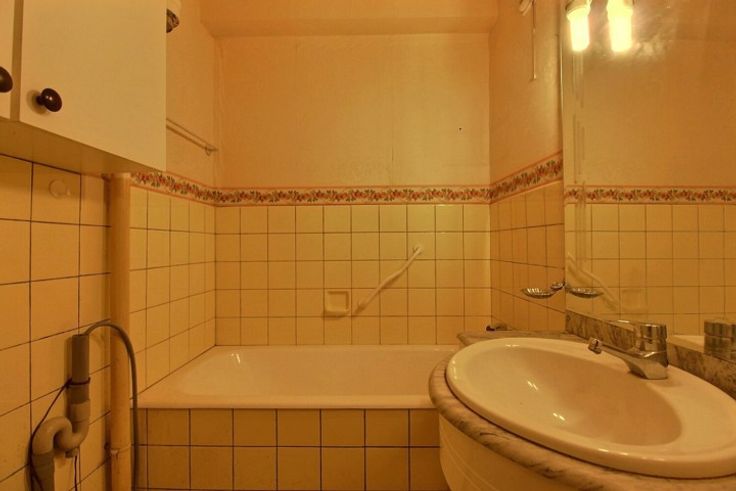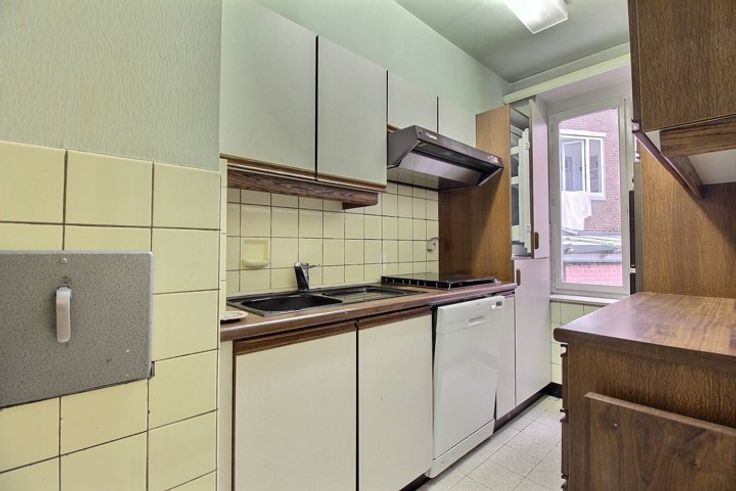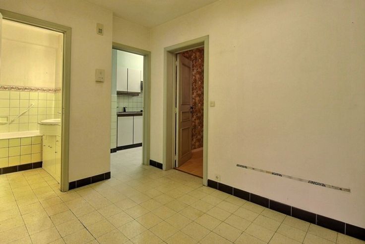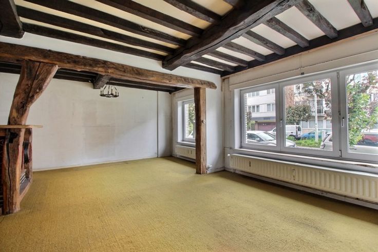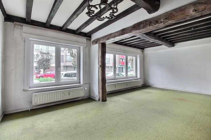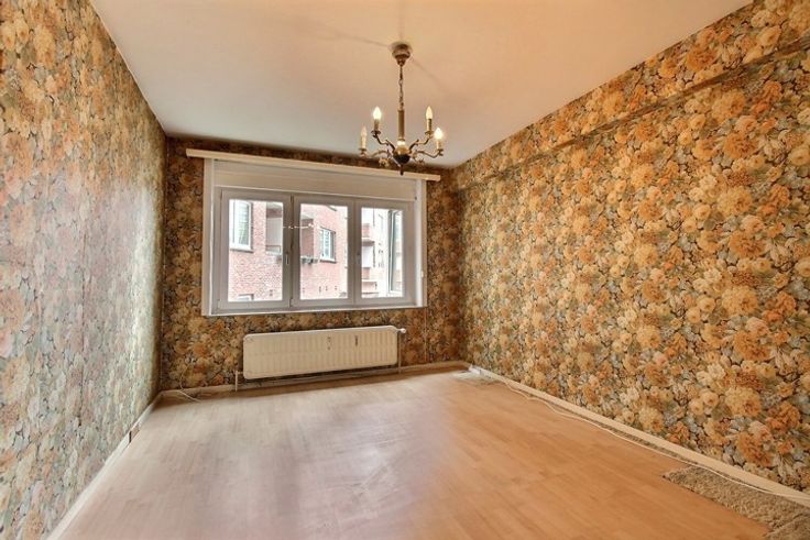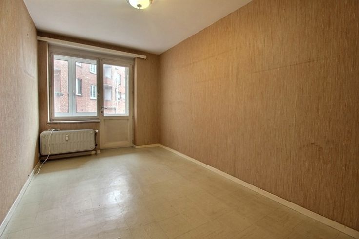 A proximité des moyens de transport, et des commerces, au rez-de-chaussée d'une copropriété bien tenue bel appartement "2 chambres-à-coucher" A RENOVER. Cet appartement se compose d'un vaste hall d'entrée, d'un espace "living/salle-à-manger" de 36 m², d'une cuisine de 6 m², de 2 chambres-à-coucher (13.5 et 12 m²), d'une salle de bains (avec emplacement pour lave-linge), d'une toilette séparée. Superficie selon PEB: 105 m². Charges de copropriété raisonnables. Cave.