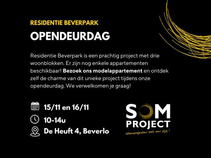 Aankoop aan verlaagd btw-tarief van 6% mogelijk indien men aan de voorwaarden voldoet *** OPENDEURDAGEN: BEZOEK ONS MODEL APPARTEMENT OP 15/11 OF 16/11, DOORLOPEND TUSSEN 10U-14U AAN RESIDENTIE BEVERPARK: DE HEUFT 4, BEVERLO *** Welkom in het mooie 'Residentie Beverpark'! In de dorpskern van Beverlo, tegenover het Burgemeester Heymansplein, bouwde Som Project 2 blokken (A en C) met appartementen en 15 woningen. Momenteel zijn we bezig met de bouw van Fase II: blok B.  In dit project bevinden zich nog enkele mooie en betaalbare 1 en 2-slaapkamer appartementen. Ideaal voor investeerders maar ook voor eigen bewoning. Indien u geen andere eigendom heeft of deze eigendom gaat verkopen, u zelf het appartement gaat bewonen en dit gedurende minimum 5 jaar kunt u bovendien in dit project aan 6% BTW kopen! Indien u beslist een appartement te kopen in deze mooie residentie heeft u inspraak in de inrichting en afwerking van keuken, sanitaire toestellen, binnendeuren, vloeren en wandtegels. U krijgt hiervoor het deskundige advies van onze interieurarchitecte, dit is inbegrepen in de prijs. De foto's van de afgewerkte appartementen die u hier ziet zijn van een reeds verkocht 1 slaapkamerappartement en ons modelappartement en geven u een goed idee van hoe uw toekomstig appartement er uit kan zien.  Bent u nog eigenaar van een huis of appartement maar wenst u te verkopen? Kom dan zeker langs. Ons vastgoedkantoor “SOM Vastgoed” verkoopt uw woning of appartement en ondertussen kiest u uit
