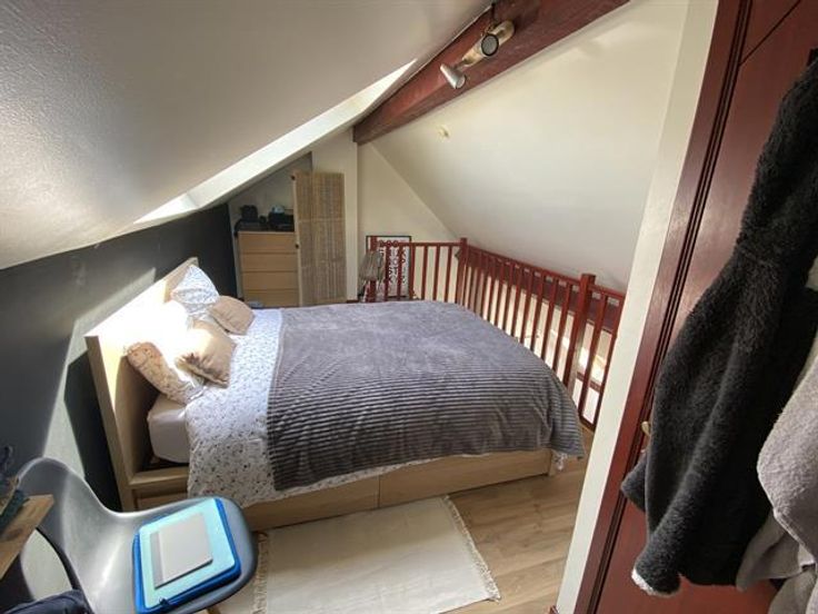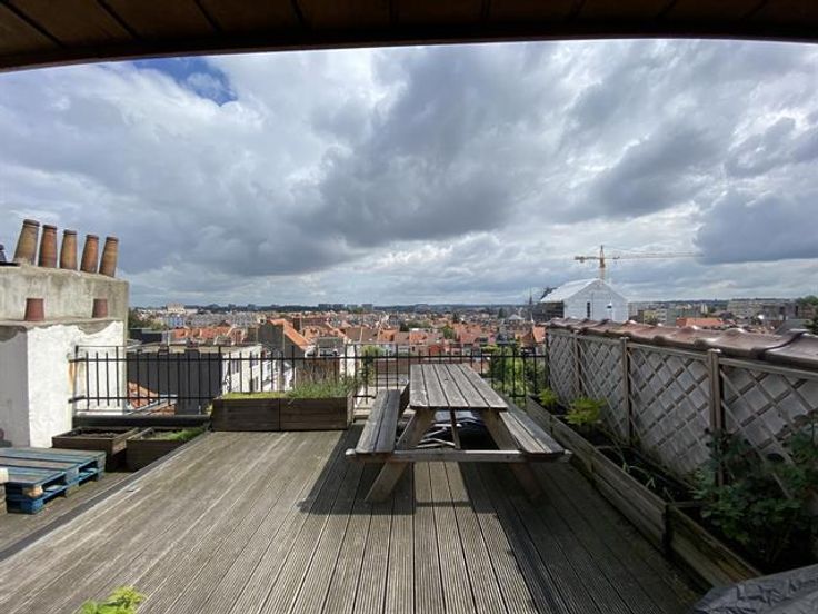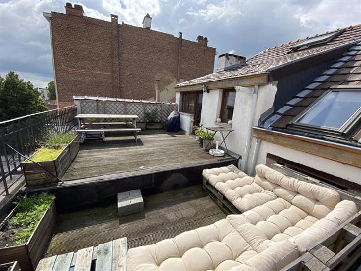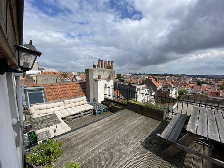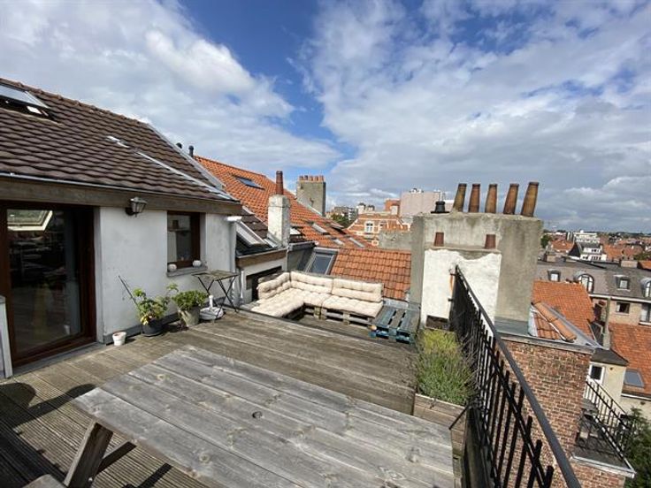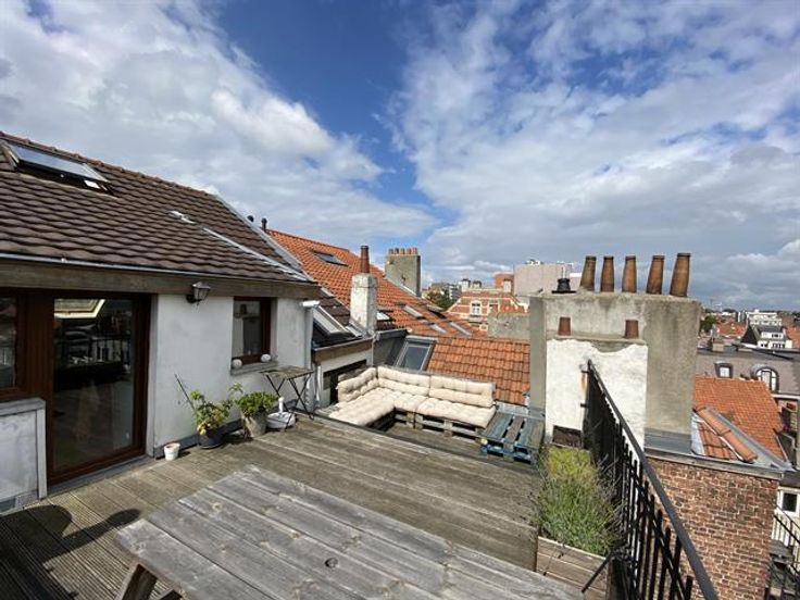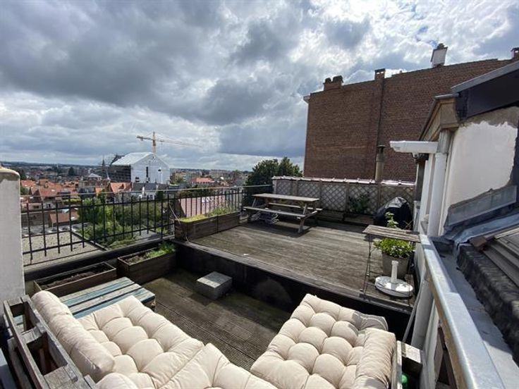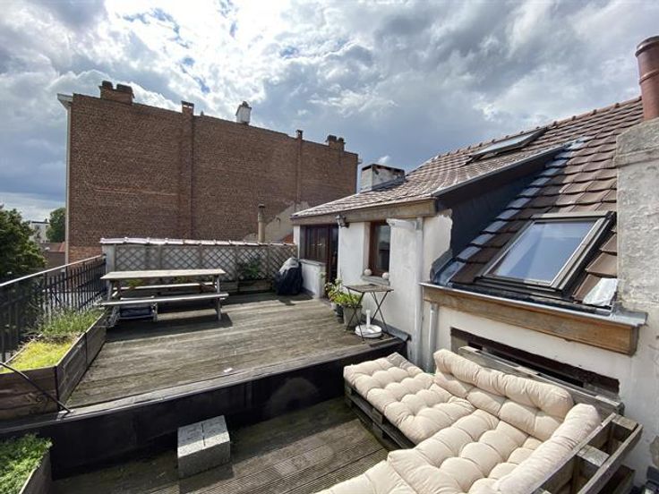 At the George-Henri metro station and close to Montgomery, beautiful 1 bedroom apartment on the 4th floor with a magnificent terrace overlooking the city. It has: a spacious and bright lounge-dining room , a fully equipped American kitchen with access to the terrace of 20m ², a bathroom and a bedroom in the mezzanine. Cellar. Charges: 95 € (common costs + water).