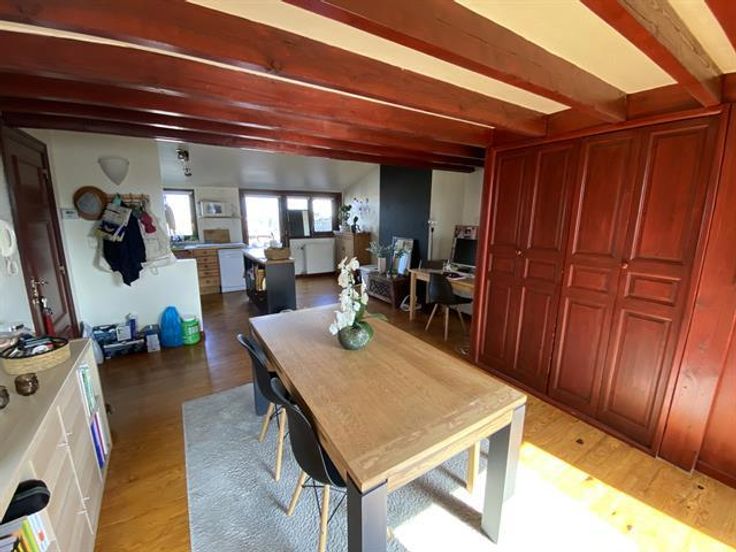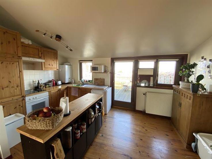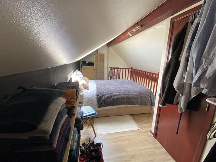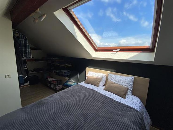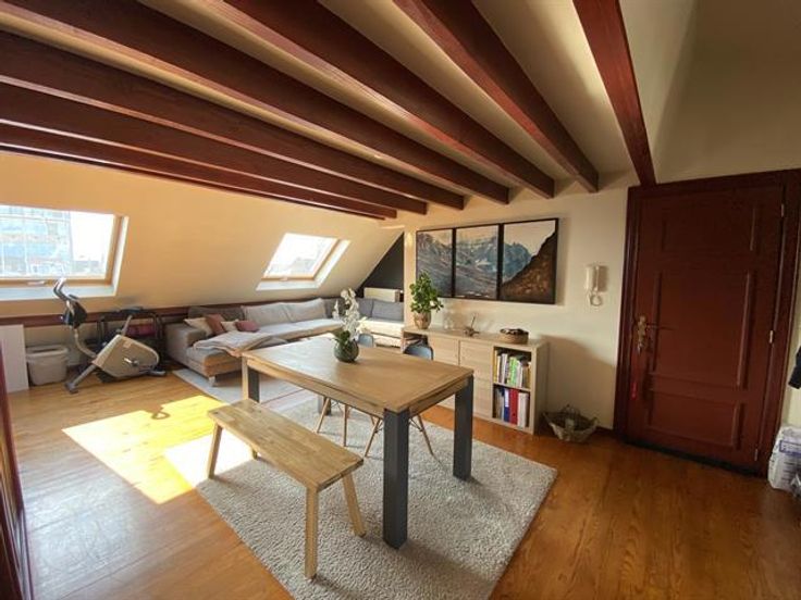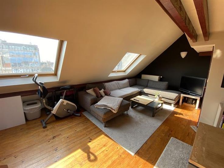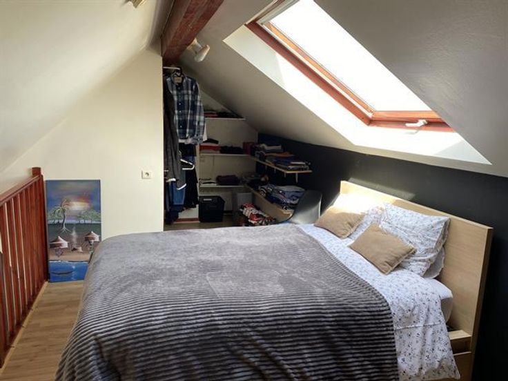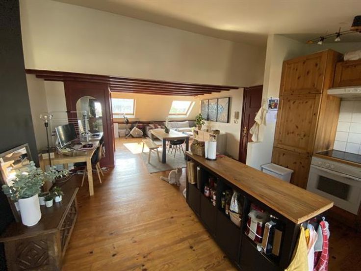 At the George-Henri metro station and close to Montgomery, beautiful 1 bedroom apartment on the 4th floor with a magnificent terrace overlooking the city. It has: a spacious and bright lounge-dining room , a fully equipped American kitchen with access to the terrace of 20m ², a bathroom and a bedroom in the mezzanine. Cellar. Charges: 95 € (common costs + water).