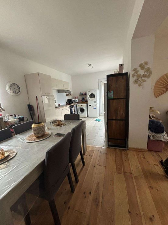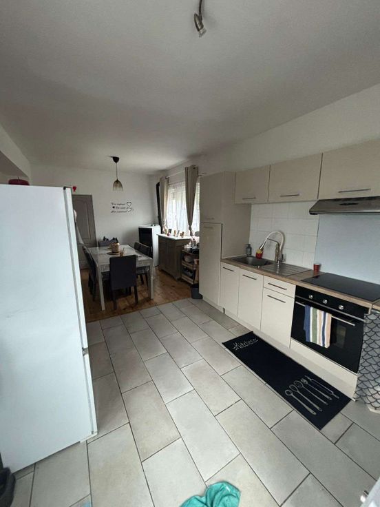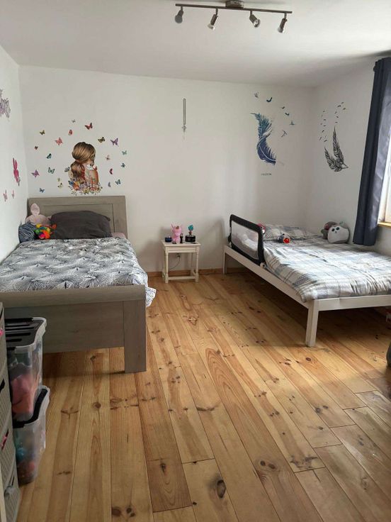 Rdc : Salon, salle à manger, cuisine équipée, salle de douche avec WC et 3 chambres.
