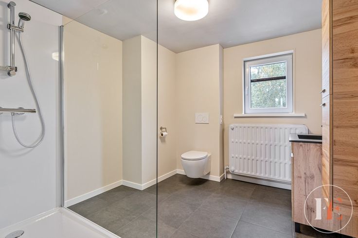 waar een aansluiting voor wasmachine en droogkast werd voorzien en voldoende opbergruimte is. In de gang is er ook een apart gastentoilet.
