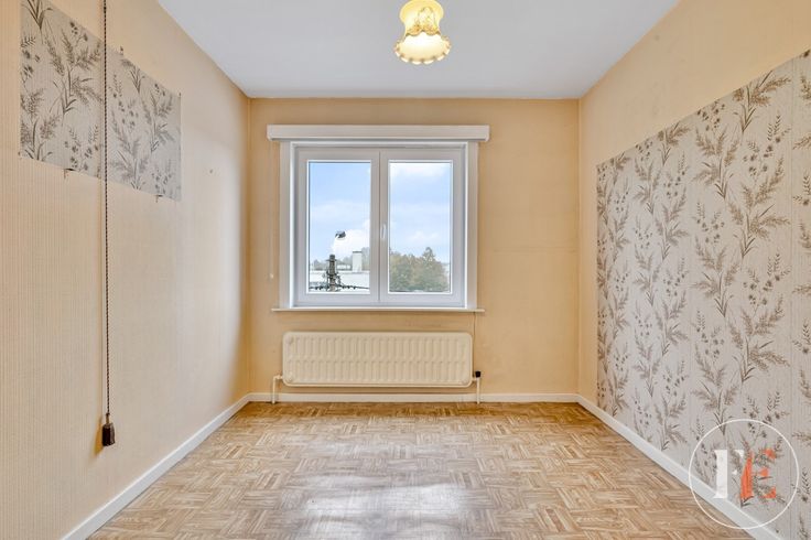 Indeling : via de gemeenschappelijke traphal komen we op de eerste verdieping met onmiddellijke toegang tot zowel keuken als woonkamer. De leefruimte, voorzien van recent geplaatst dubbel glas, baadt in een zee van licht.