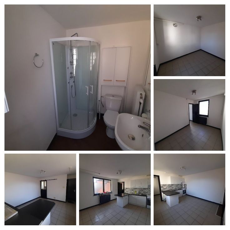 Les studios possèdent une cuisinette blanche avec évier en inox, frigo intégré, 2 taques électriques et 1 meuble aménagé - SDB avec douche et WC - parlophone - Chauffage gaz et/ou électriques.