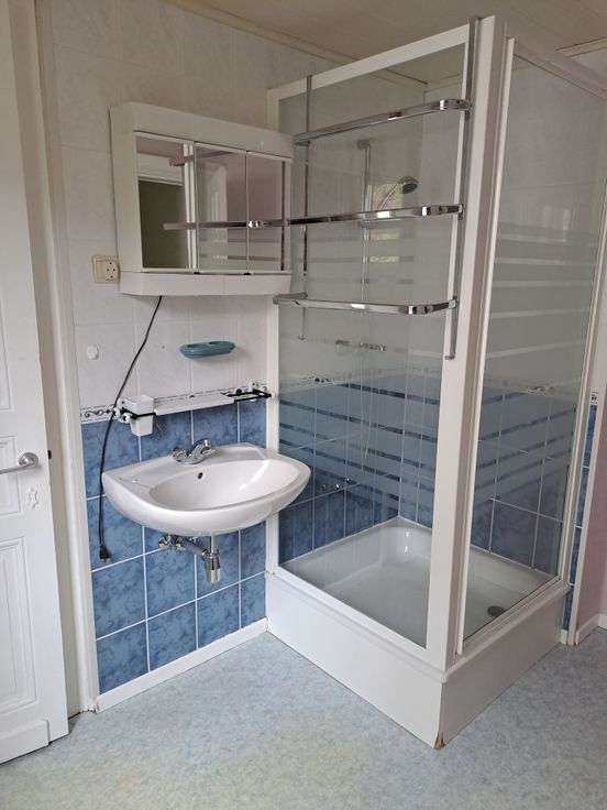 Composition : salon, salle à manger avec cuisine semi-equipée ( plaques électriques, four, frigo), une chambre, salle de bain avec douche, WC, débarras.