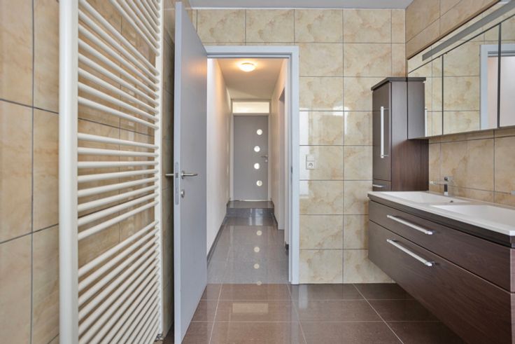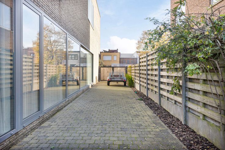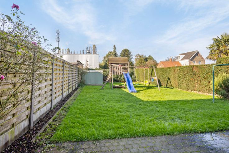 Modern 2-slaapkamer appartement met een grote tuin. Indeling: Via de inkomhal heeft men toegang tot het gastentoilet en de ruime leefruimte met extra veel lichtinval door de grote raampartij. De leefruimte geniet van een volledig geïnstalleerde open keuken voorzien van een inductievuur, oven, microgolfoven, ijskast, vriezer, vaatwasser en voldoende opbergruimte. Aan de keuken, een technische berging met aansluiting voor een wasmachine/droogkast. Verder beschikt het appartement over twee slaapkamers en een ruime badkamer met een ligbad, een toilet en een wastafel. Bijzonderheden: Grote tuin van ca. 215m²; Oprit met poort; EPC label B; Ligging: Ideaal gelegen met verschillende faciliteiten in de buurt waaronder scholen, winkels en een sport -en cultuurcentrum.