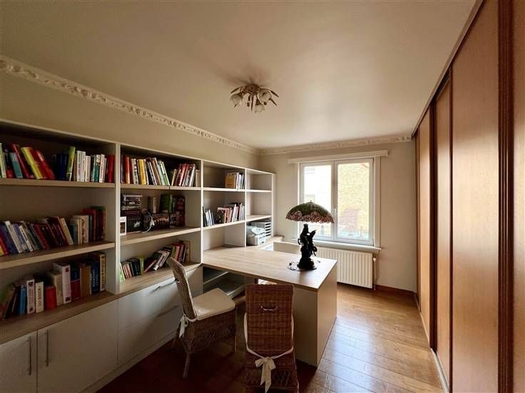 Fantastisch gelegen in hartje Brasschaat! Zicht op het gezellig, groen marktplein aan de kerk en vlakbij het park van Brasschaat, alle winkels op wandelafstand. Dit mooi, kwalitatief afgewerkt en ruim 2-SLPK appartement van ca. 100m², bevindt zich op de 1ste verdieping in een kleinschalig appartementsgebouw. Dankzij een gevelbreedte van maar liefst 10m, geniet u in de leefkamer en keuken van veel lichtinval en mooi uitzicht op het groene kerkplein van het Brasschaats centrum! De leefruimte is opgedeeld in een zit- en eethoek, voorzien van een massief eiken vloer en AIRCO. De open keuken heeft een ruim kookeiland en is volledig uitgerust met o.a. vaatwasser (Miele), gasvuur met 4 pitten en grillplaat, combi-oven (Siemens), ijskast, etc. Veel opbergruimte! De hoofdslaapkamer heeft ingemaakte kasten en AIRCO, is achteraan het appartement gelegen (rustig). De luxueuze en ruime badkamer is voorzien van een regendouche met massagestralen, dubbel lavabomeubel met spiegelkast en verwarmde handdoekdroger. De bureaukamer (of 2de volwaardige slaapkamer) is momenteel ingericht met een bibliotheek wand en bureau, alsook ingebouwde kastenwand. Ruime berging met aansluiting voor wasmachine, droogkast en 2de ijskast of vriezer. Aparte WC. 2 privatieve kelderbergingen. Geen lift - parlofoon aanwezig. Inbraakveilige deur. Heel lage algemene kosten. Maak snel een afspraak, info@ccimmo.be of 0476/51.76.66
