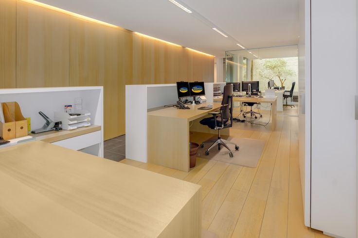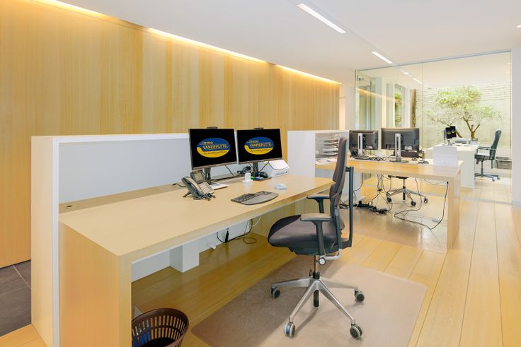 Grote en zeer stijlvol ingerichte bureauruimte met onthaalmeubel en 3 uitgeruste bureaus;