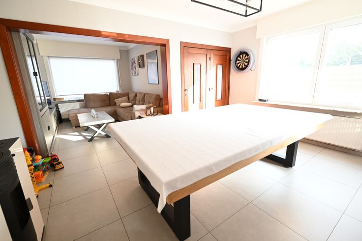 Deze PERFECT INSTAPKLARE gezinswoning bevindt zich aan de GROENE RAND van Veldegem, dit op wandelafstand van het CENTRUM! Deze woning heeft verschillende grondige RENOVATIEWERKEN (bevloering, CV op aardgas, kkn, badk, ...) ondergaan tot een ZEER ENERGIEZUINIGE (nieuw schrijnwerk (2016), airco (2022), zonnepanelen (2024)) en GEZELLIGE WONING! Tevens beschikt dit pand over een DUBBELE GARAGE (in diepte) met zowel voor- als achteraan een toegangspoort, zodat er een rechtstreekse toegang is tot de achterliggende SUBLIEME tuin met OPEN UITZICHT op de achterliggende velden!