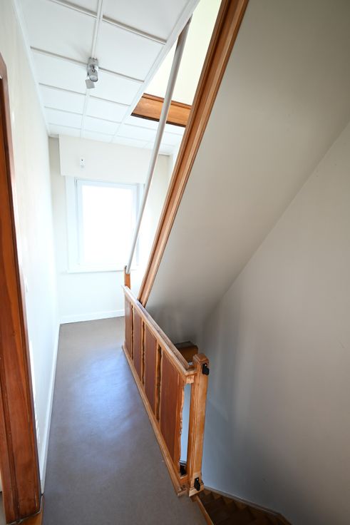 Op het gelijkvloers heeft u inkomhal, L-vormige leefruimte, tijdloze keuken met ontbijthoek, sas, toilet, badkamer met ligbad en inloopdouche. Op de eerste verdieping heeft u nachthal, 1ste ruime slaapkamer, 2de slaapkamer. Op de zolderverdieping heeft u een extra toilet en 3de slaapkamer. Naast de woning is er een zeer ruime garage aanwezig. Achteraan de woning heeft u een mooie diepe tuin, ook is er nog een extra buitenberging aanwezig!